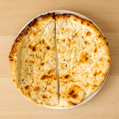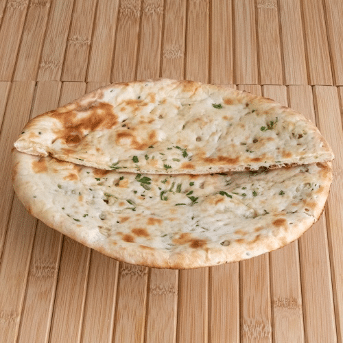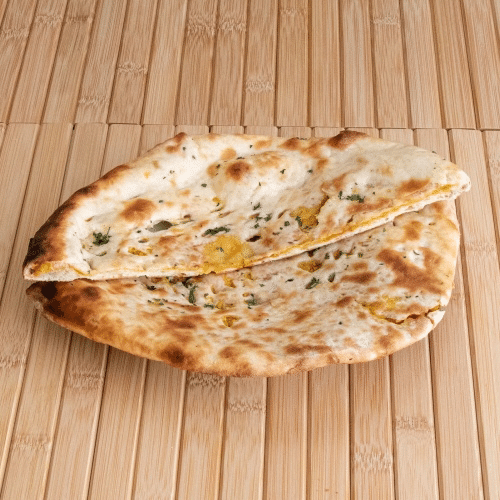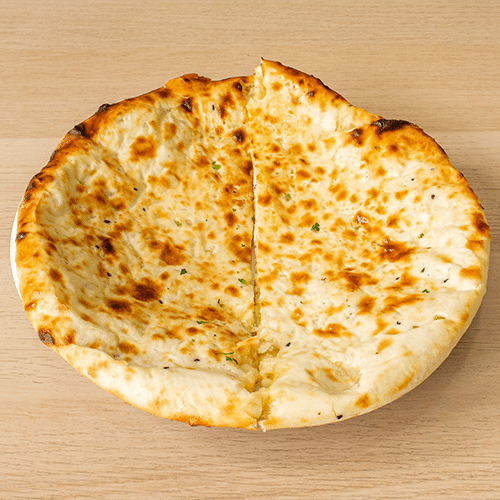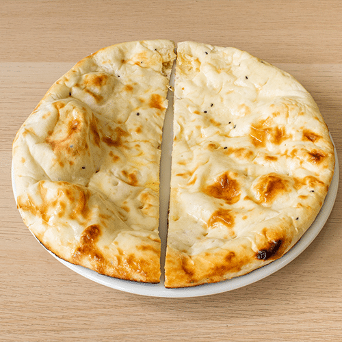 Kies uit: Pilaw rice, Naan, Garlic naan, Cheese naan, Garlic cheese naan, Alu naan en meer.