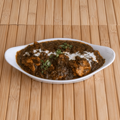Gekruide spinazie, rijst of naan is optioneel bij te bestellen