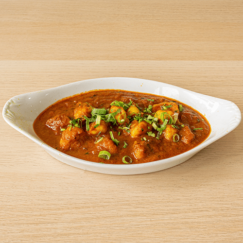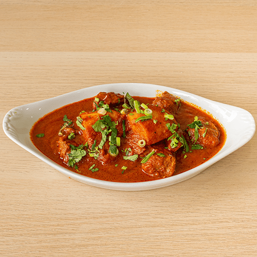 Indiase kaas in een zoete curry, bereid met room, amandel en kokos, rijst of naan is optioneel bij te bestellen