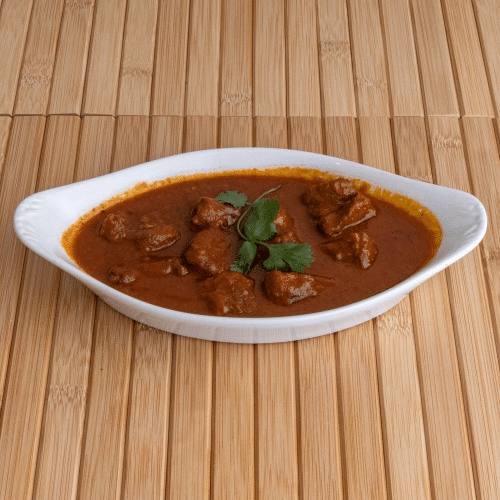 Lamsvlees in een zeer pikante curry bereid met aardappel en peper