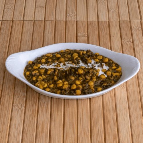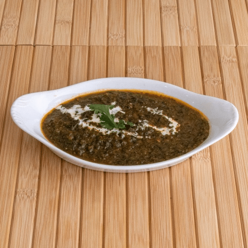 Gekruide spinazie met linzen, rijst of naan is optioneel bij te bestellen