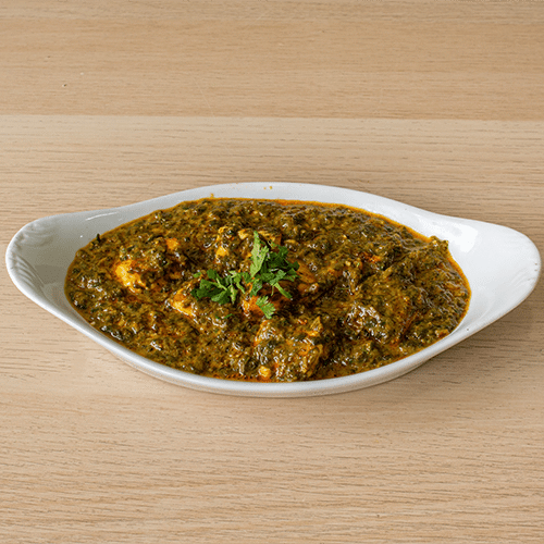 Gekruide spinazie met Indiase kaas, rijst of naan is optioneel bij te bestellen