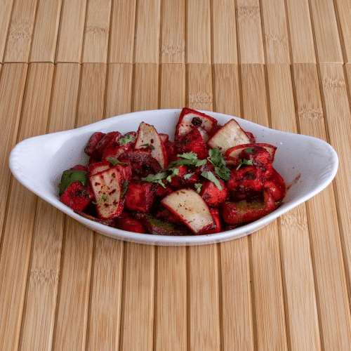Grote garnalen in een zeer pikante curry bereid met aardappel en peper