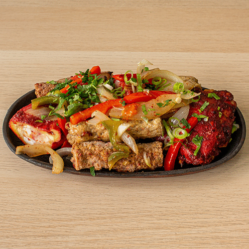 Combinatie van tandoori chicken, chicken tikka, chicken kebab en lamb kebab