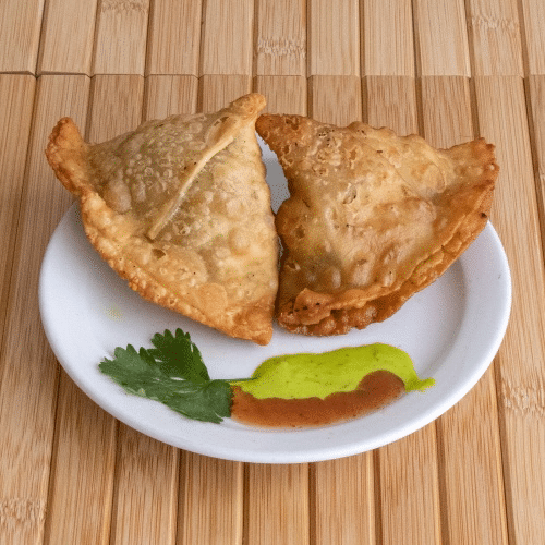 2 stuks. Vegetarische pastei gevuld met aardappel en doperwten